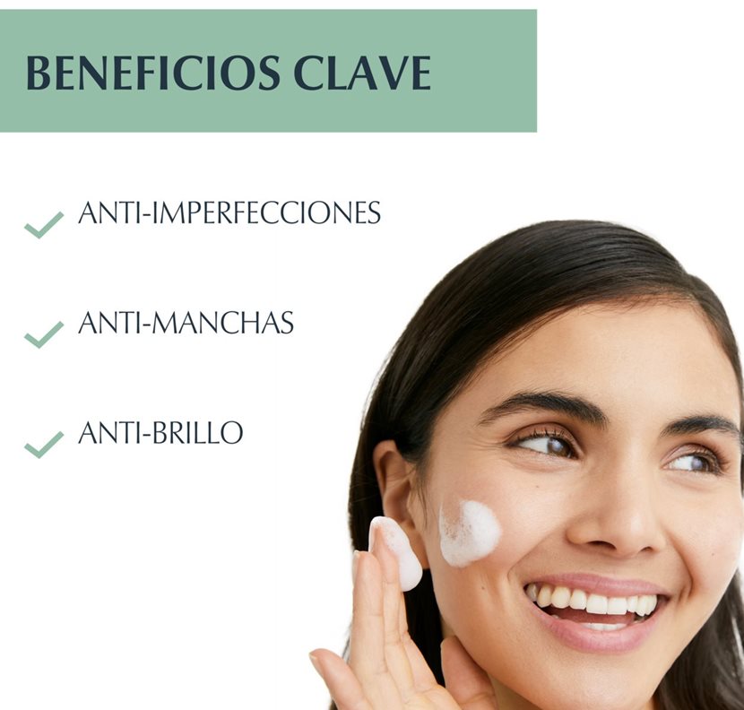 • Anti-Brillo: Limpieza profunda que ayuda a eliminar el exceso de sebo, suciedad y maquillaje.